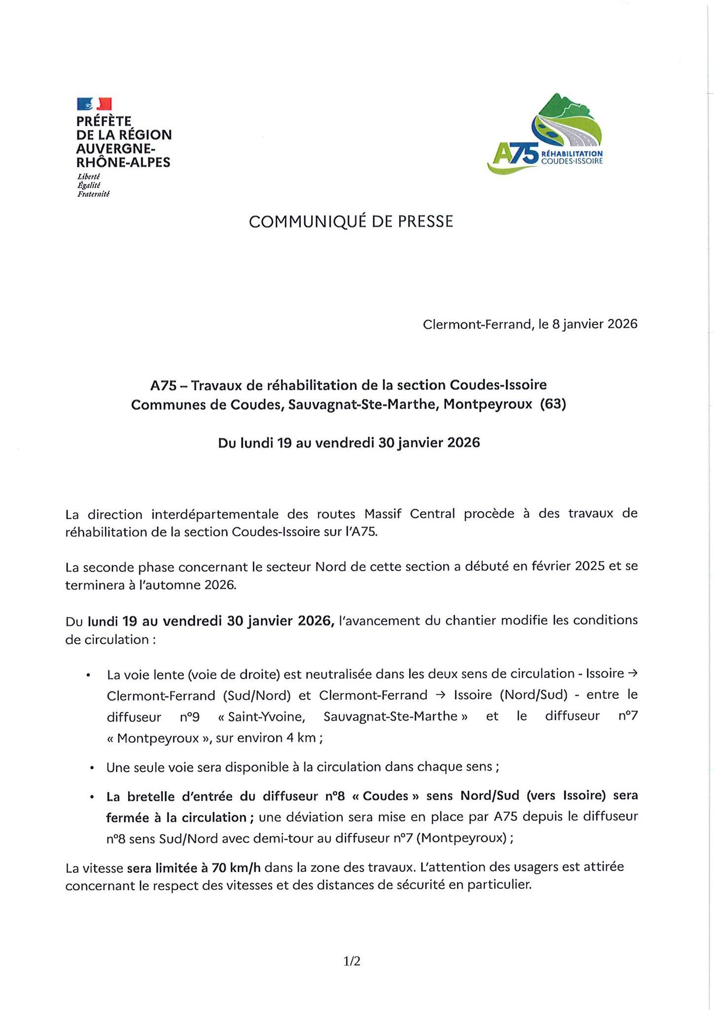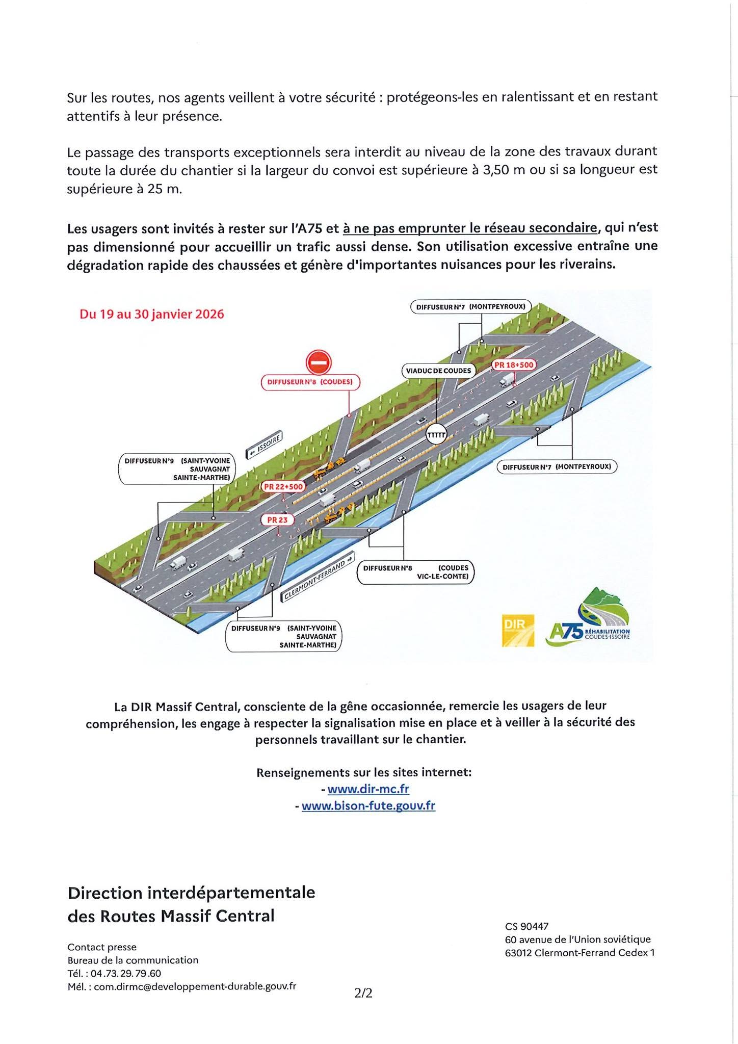 Communiqué - travaux A75
