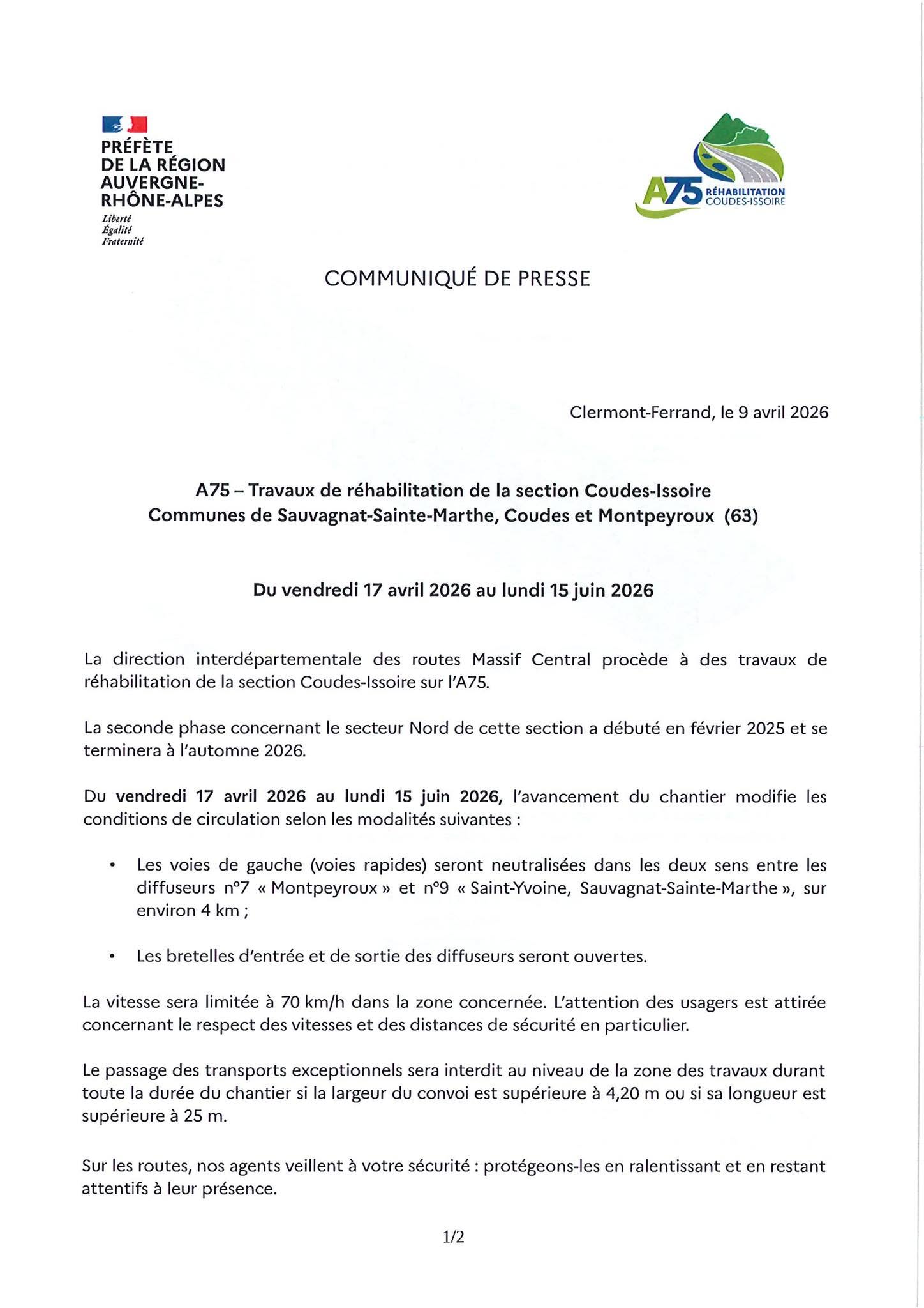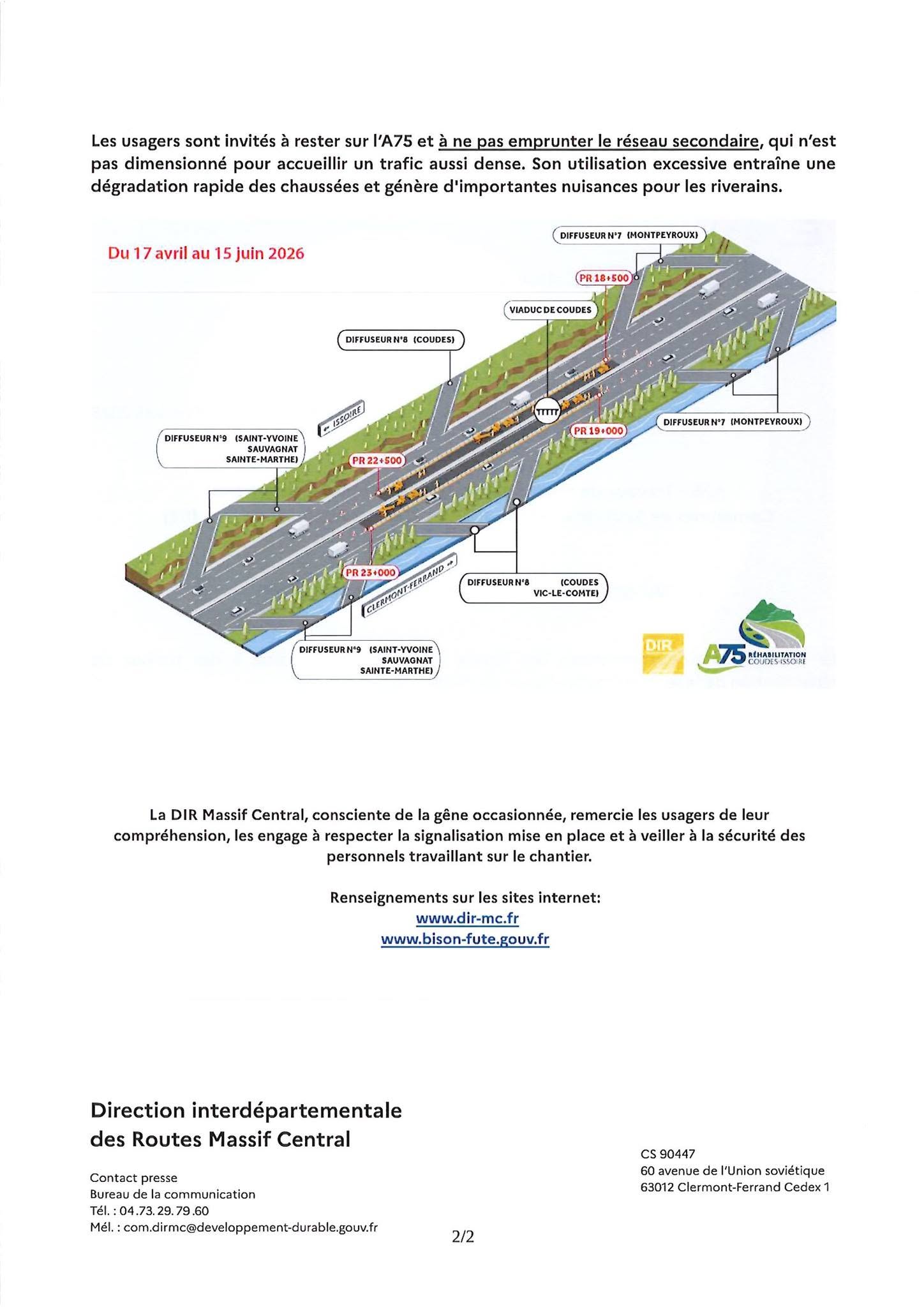 Information travaux sur l'A75
